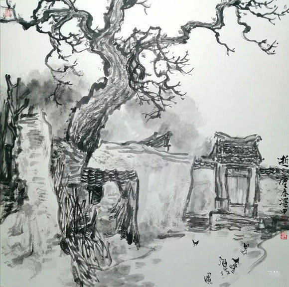 “格物致知”,出自儒家经典《礼记o大学》:“致知在格物,物格而后知至”。意为探究事物原理,从中获取智慧。对于中国画而言,画家为物象传神,要忠实描写观察对象,穷尽物理,就首先必须“格物”,“格物”之后才能“致知”,这个“知”是物之体貌,也是画家心源所在。“格物”是面对自然和传统,有一种细致入微的观察和表现,它不是为了刻画而刻画,而是讲求传神、富有生趣的表达。通过格物、致知、乃至进一步对生命与自然思考和体悟,从而在创作上达到传统、生活、心源三位一体,才能进入到更高的艺术境界。